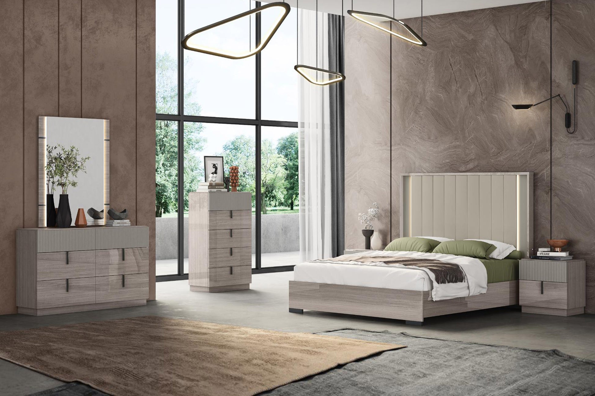Matching LED dresser mirror complements the set with modern lighting and visual appeal.