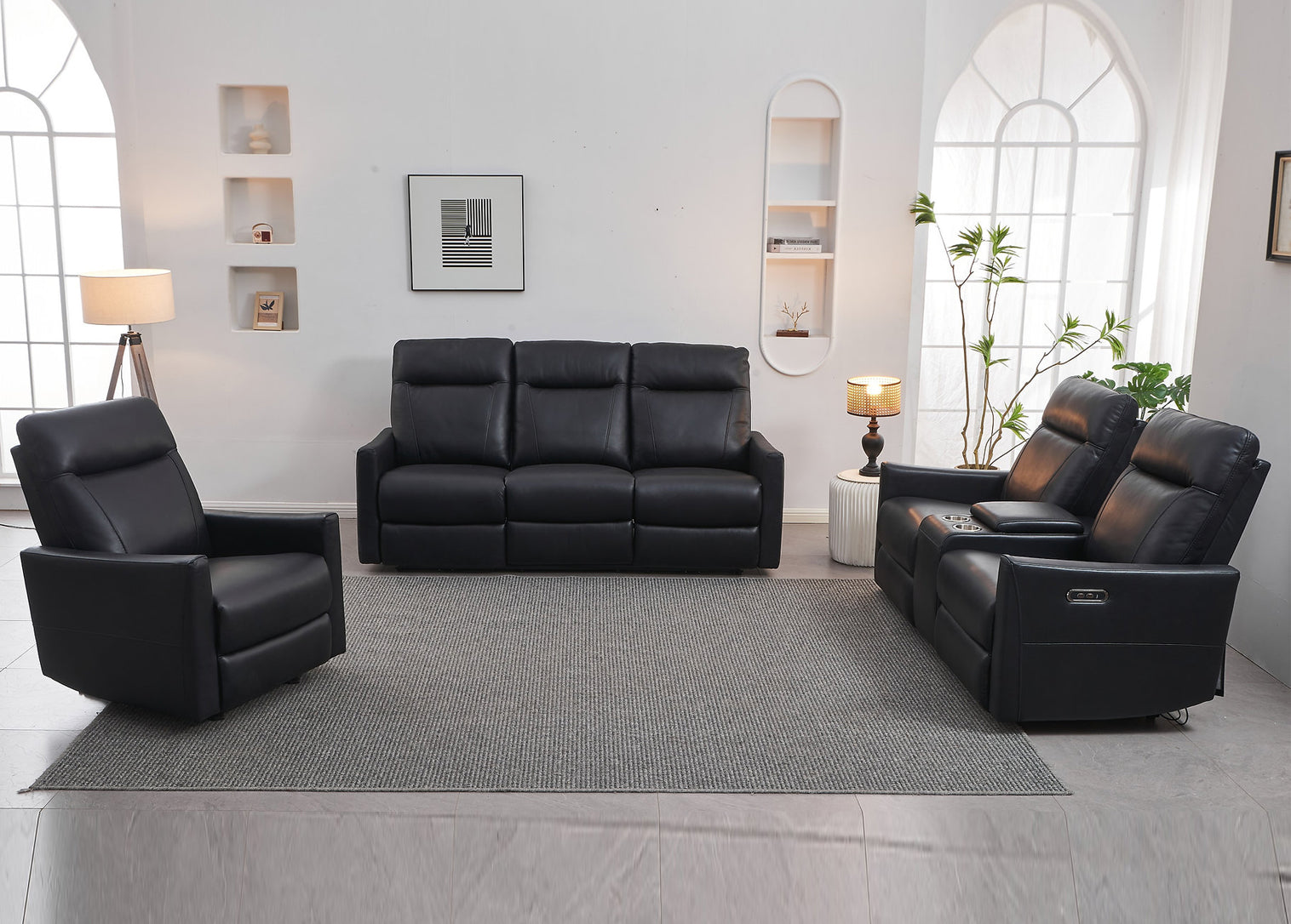 Transform your living space into the ultimate relaxation zone with this luxurious 3-piece Power Recliner Set. Crafted from soft black leather match, this set combines comfort, style, and functionality for a superior seating experience.