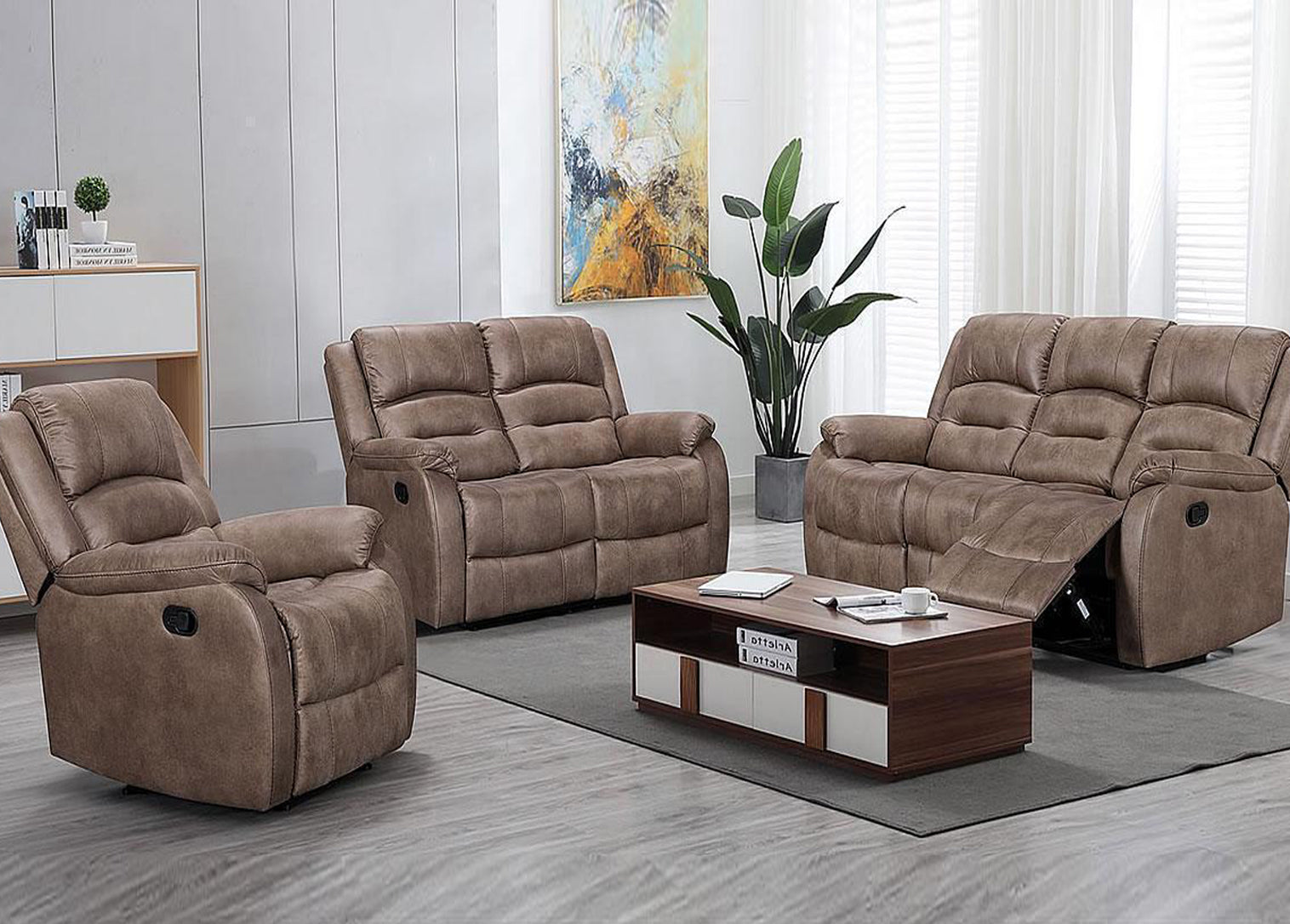 - Functionality, comfort and style combine together in this comfortable yet stylish recliner sofa set.