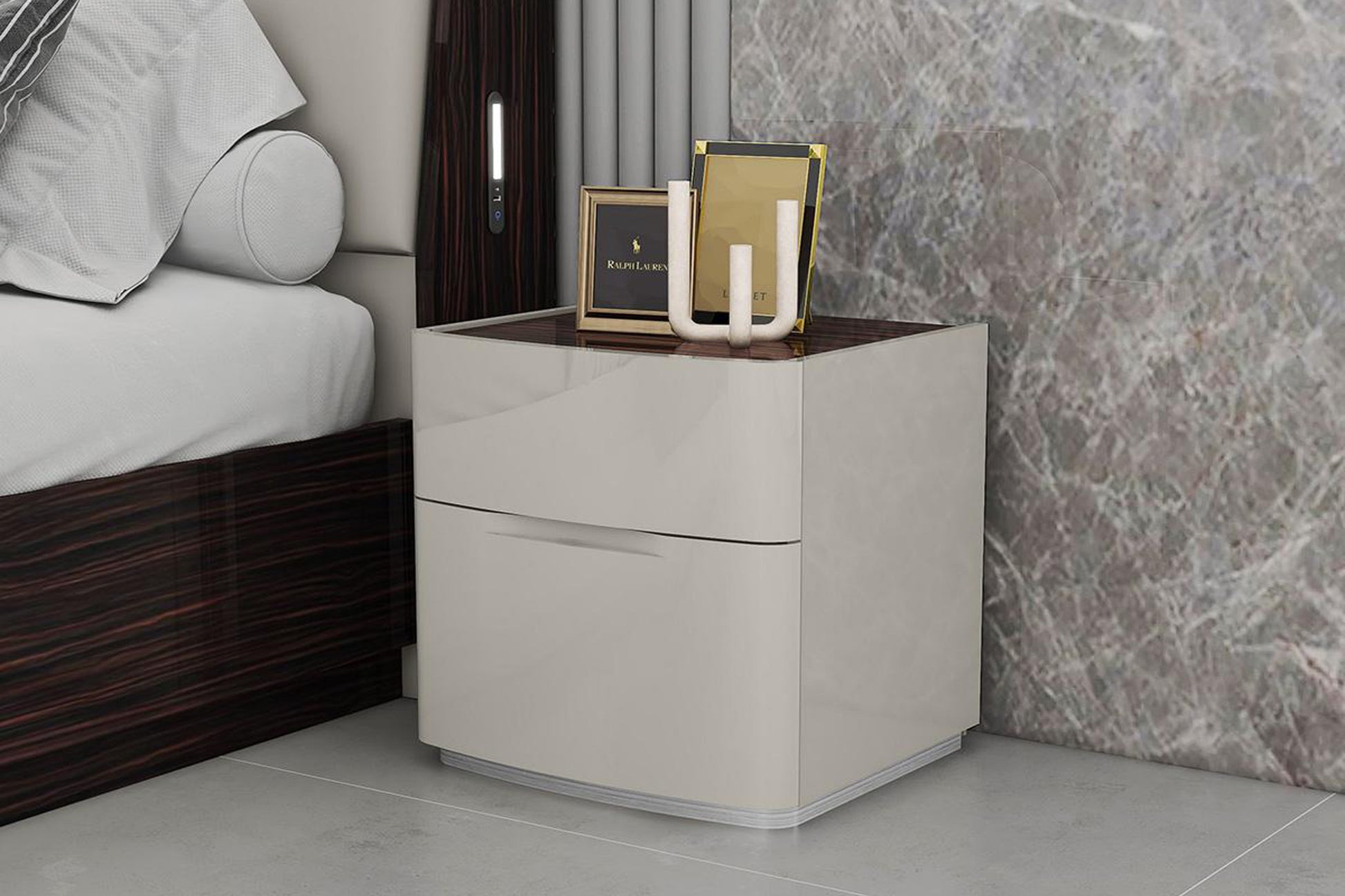 Modern Grey & Ebony High-Gloss Bedroom Set