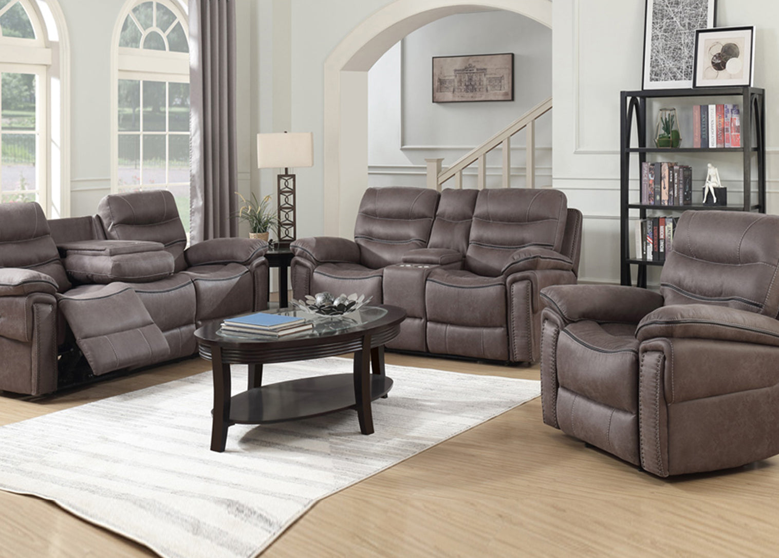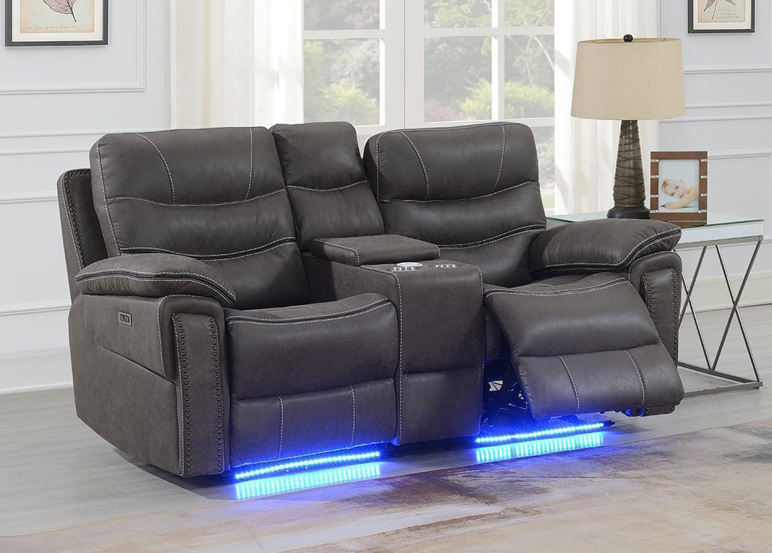 - Loveseat with two power recliners, power headrests and console with cup holders, storage and an additional wireless charger;