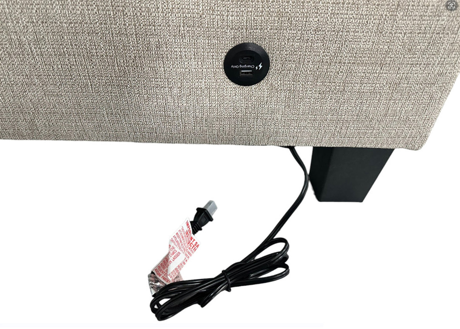 The Nolan Sectional RHF offers luxurious comfort with its thick padded seating and tufted back. Its wooden legs add a touch of sophistication. This fabric sectional includes a built-in USB port on the LAF sofa, along with a RAF chaise and throw pillows for added relaxation.